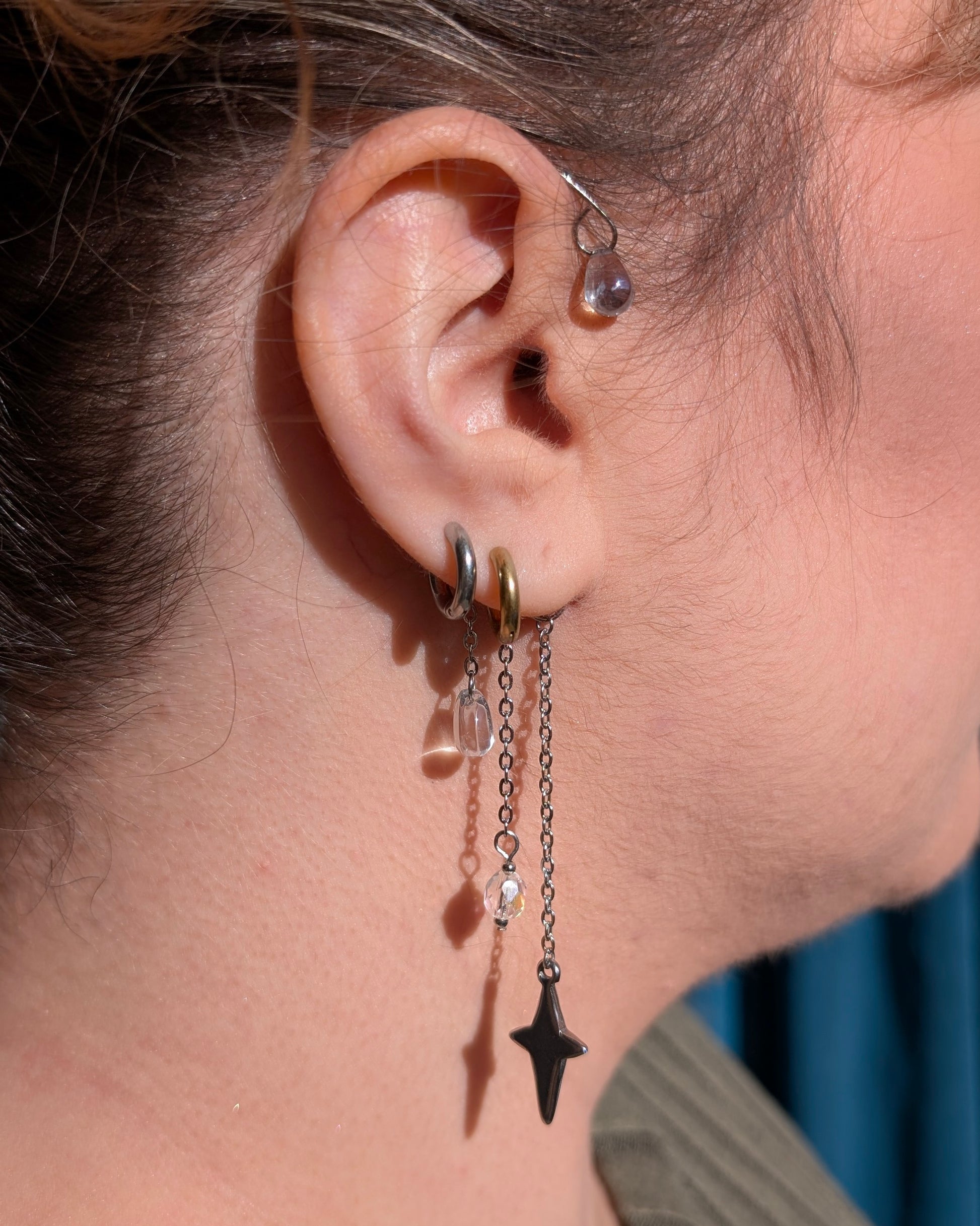 Ces voûtes se portent sans avoir besoin d'avoir les oreilles percées, elles se positionnent derrière l'oreille et peuvent être portées seules ou avec d'autres bijoux ou piercings.