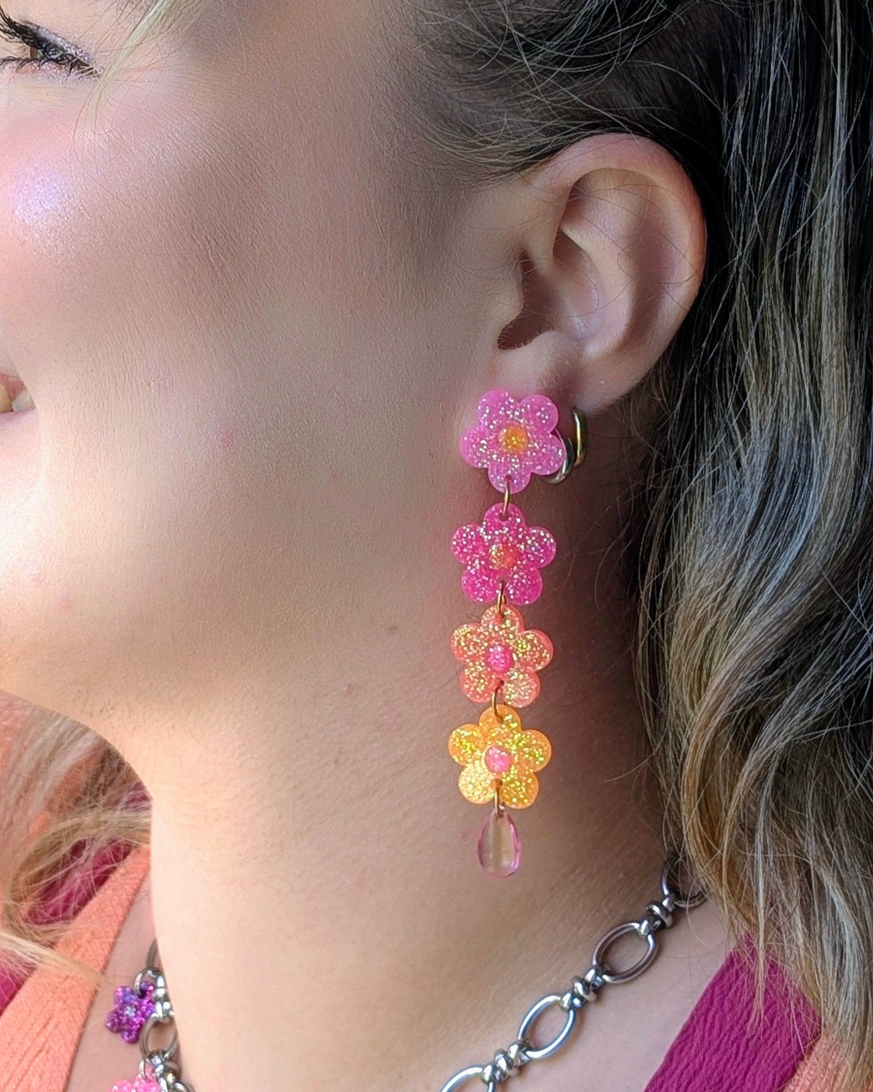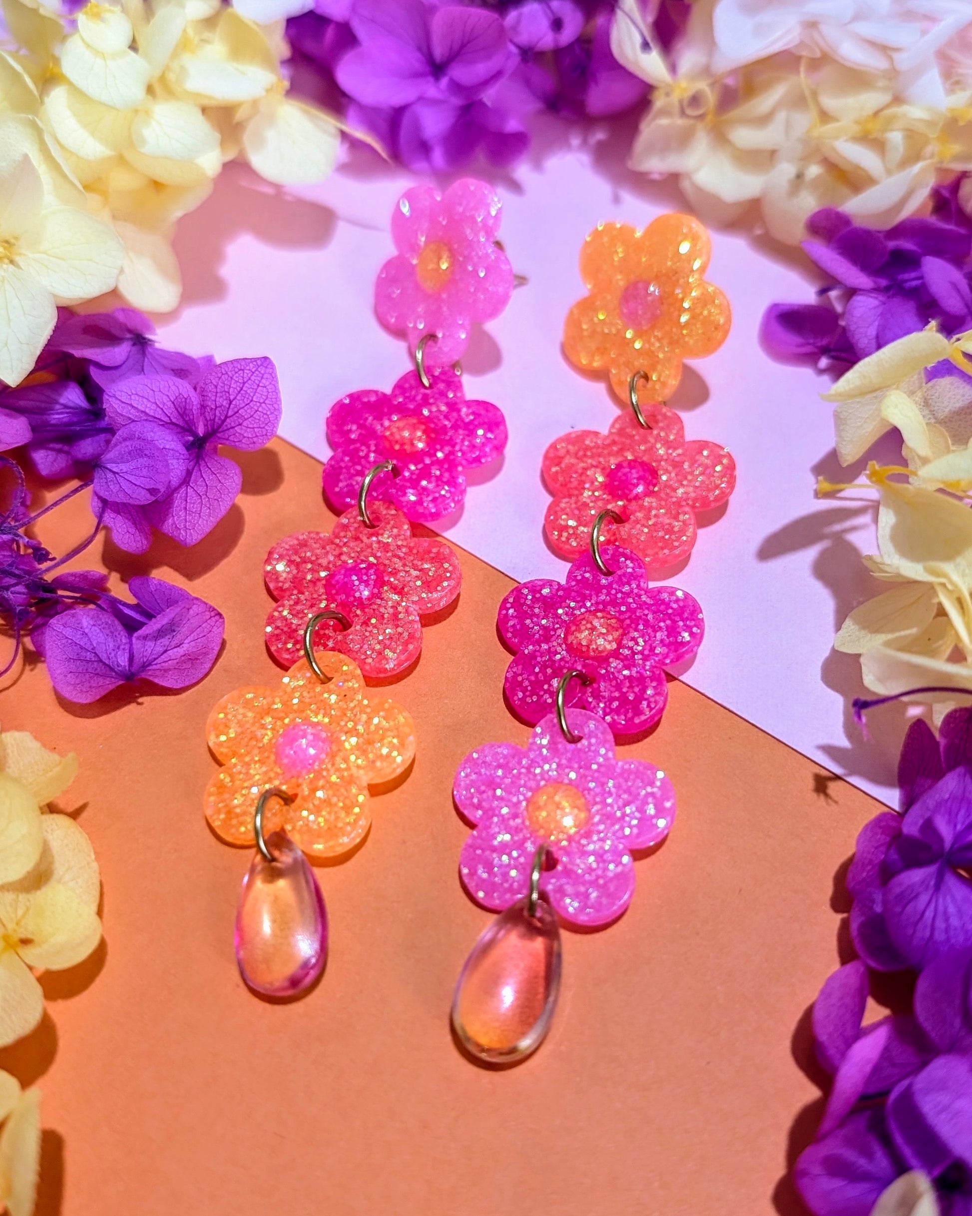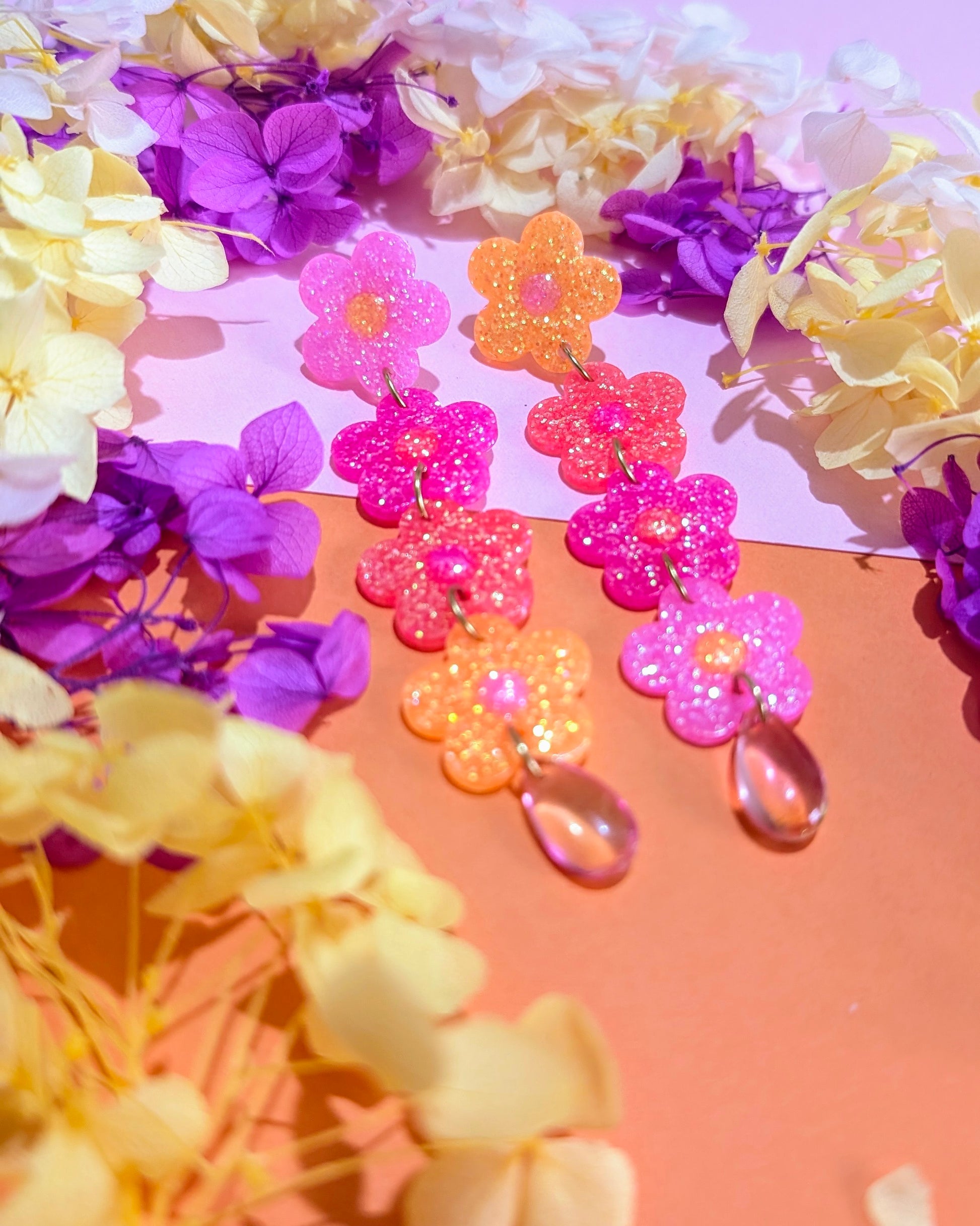 - Boucles uniques faites en résine UV et paillettes